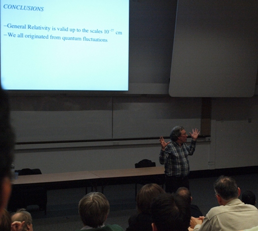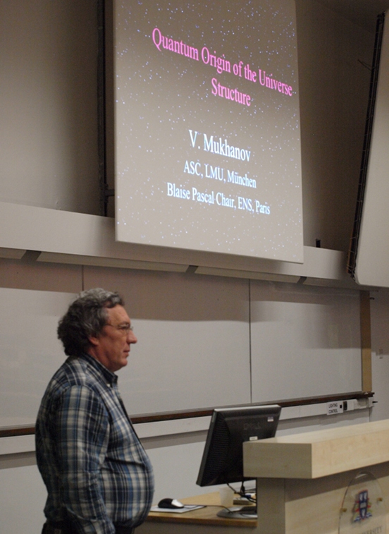 was given on Wednesday, April 24th 2013, 4 p.m. in the Chadwick Lecture Theatre by Professor Viatcheslav Mukhanov, Professor of Theoretical Astroparticle Physics and Cosmology, Ludwig-Maximilian University Munich. |